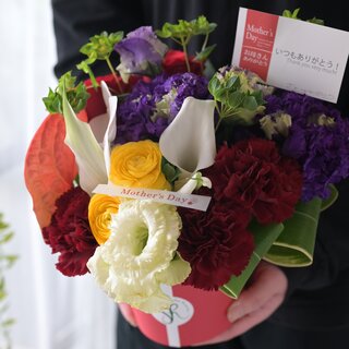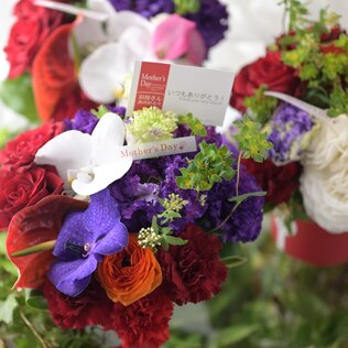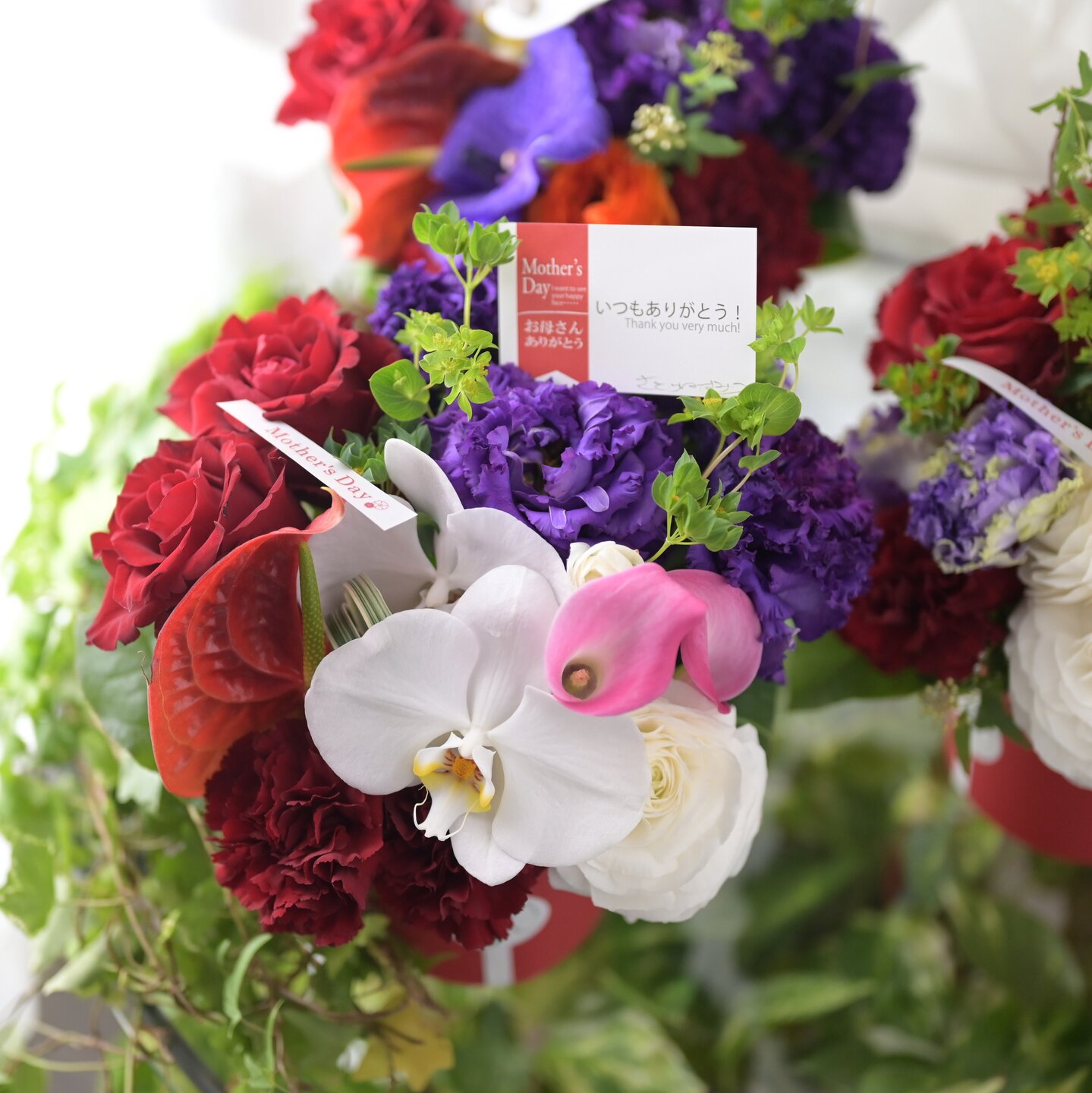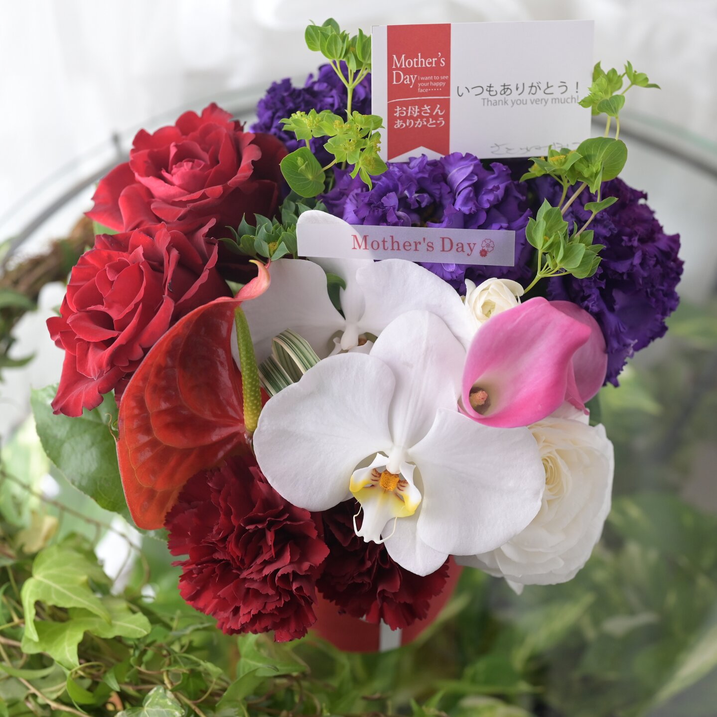 母の日シーズンは市場の状況が毎年変動し、すべてのお花を確約するのが難しいこともありますが、その分 その時に一番素敵なお花を厳選 し、心を込めてお作りします。どんなお花が入るか、楽しみにお待ちいただけたら嬉しいです!