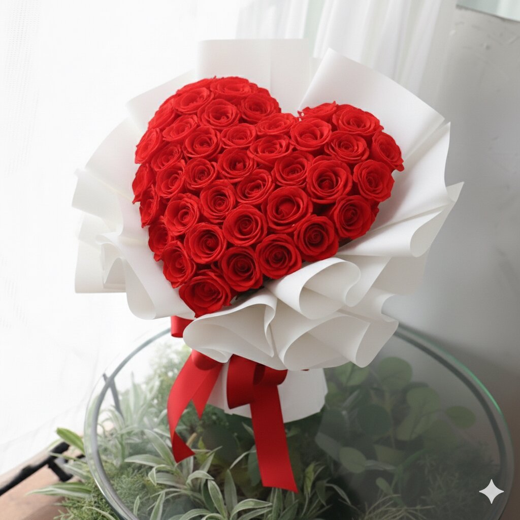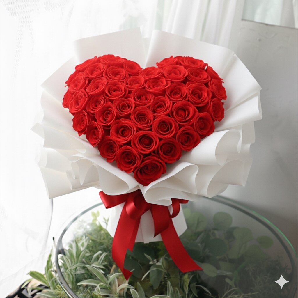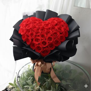 「ハートの形をバラの花束で」これは永遠のテーマでしたが、やっとここまで完璧な形を作ることができるようになりました!! ハートの形には人の心を引き付ける特別な魅力があります。お誕生日はもちろん、プロポーズや、特別な日のプレゼントにこのハートのバラの花束贈って見てはいかがですか?これは日本国内では当店でしか作れないと思います。