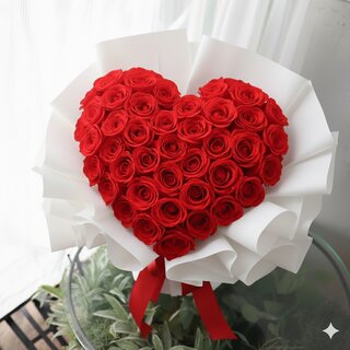 ※バラの本数はこのハートの形を作るのに決まった本数ではなく、その仕入れたバラにより大きさ、咲き具合などにもよって調整致しますが、40~50本程度で仕上げます。(本数指定はお受けできません)