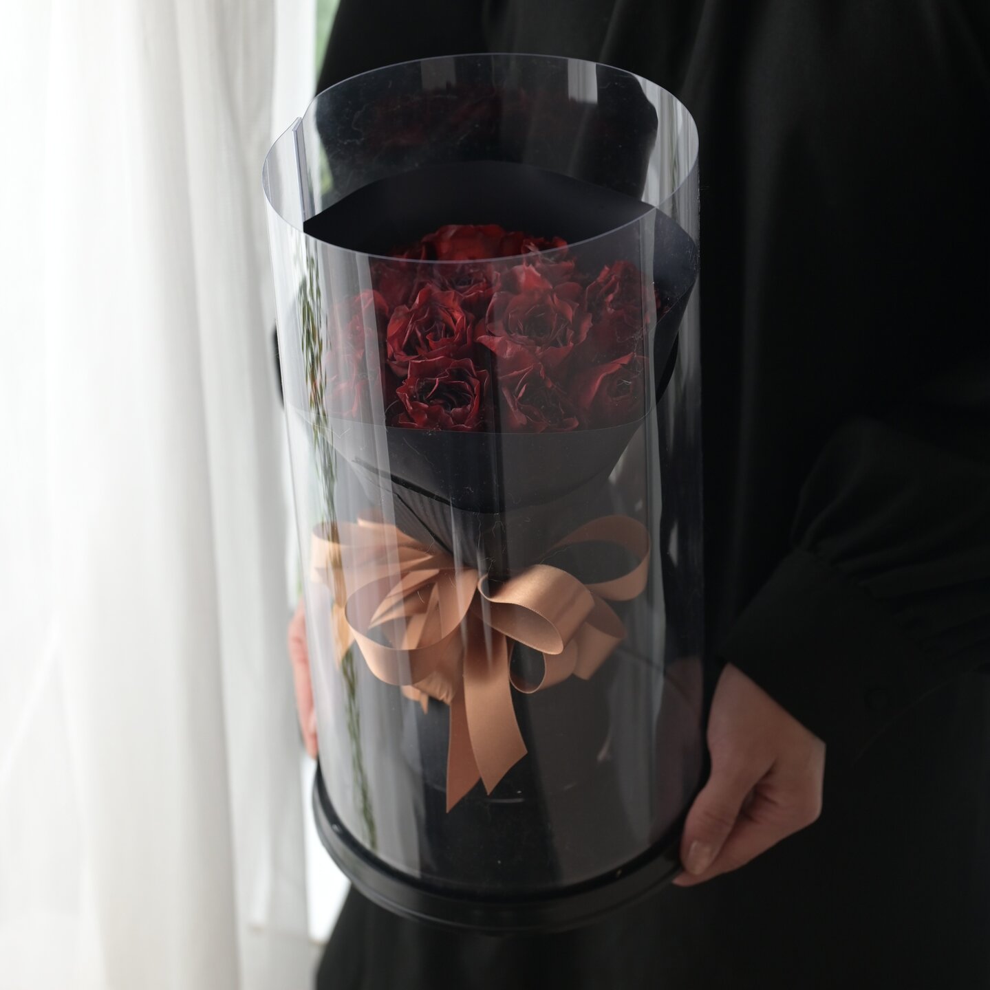 感動の花束のバラとラッピングをそのまま使いサイズを小さくして「まるであの日のバラだ」を表現いたします。クリアケースに思い出ごと閉じ込めて保存できます!!