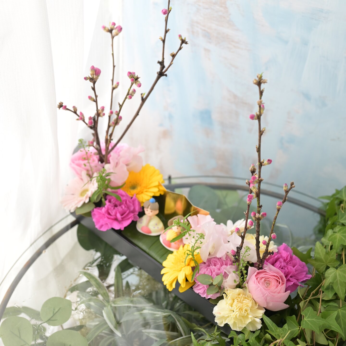 毎年ひな祭りのギフトで一番人気の「雛まつりヨコーレ」横長の器に「桃の花、お内裏様、お雛様+春の花」でアレンジしています。この横長の形とても飾りやすいんですがサイズもあるので飾り映えしてとても喜ばれています。ひな人形は大きすぎて飾ってないけど、、、とういうかたへもとってもおすすめです。 お子様や、お孫さんへのプレゼントに毎年とっても喜ばれていますよ!! 今年のひな祭りにぜひ送ってみてはいかがですか??